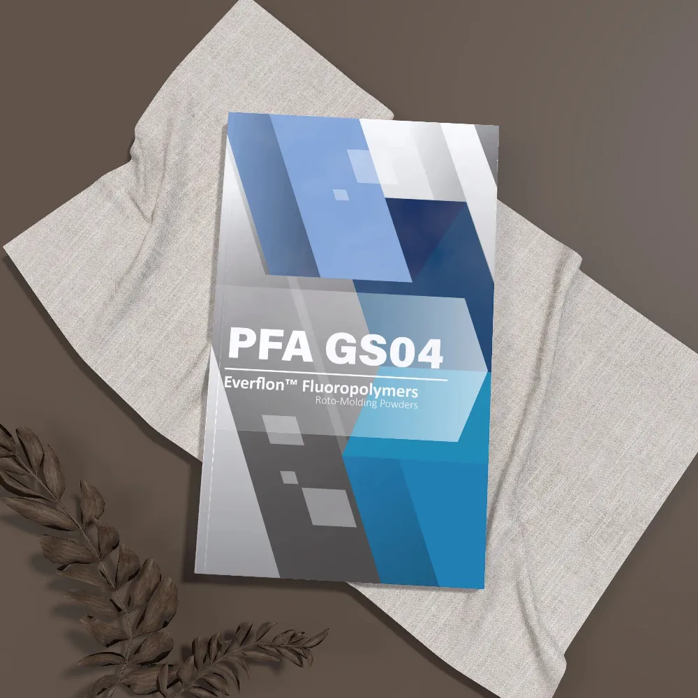 Everflon™ PFA GS04 is a premium resin available only as a free-flowing powder. Its most unique features, controlled particle size and size distribution, provide proper flow and fusion behavior in rotational molding process. In addition, Everflon™ PFA GS04/GC is chemically modified to yield enhanced resin purity, lower extractable fluorides, and freedom from other foreign materials. Its surface smoothness is improved by minimizing spherulite size, and its chemical permeability resistance is enhanced by increasing its crystallinity. This product contains no additives and is designed for hostile chemical environments where purity in the parts-per-billion range is needed.