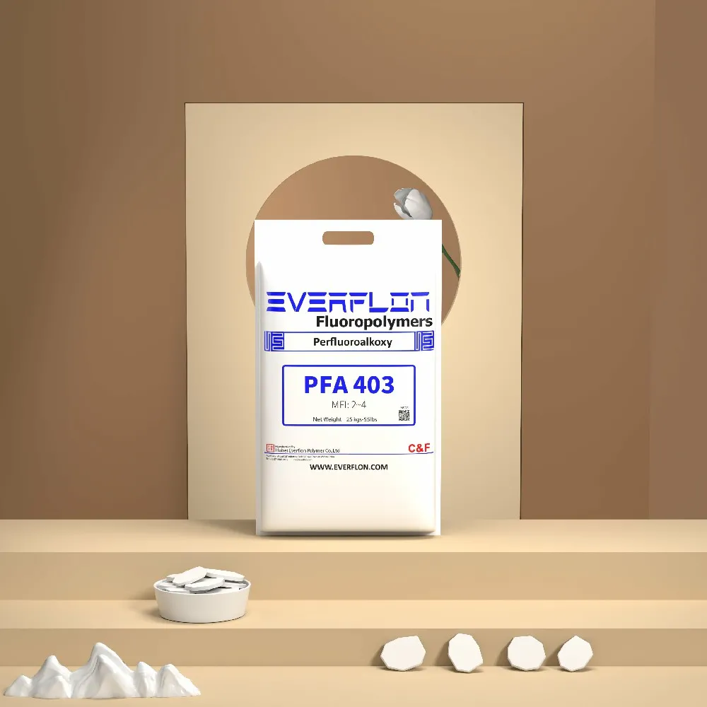 Everflon™ PFA GC403 is a special purpose fluoroplastic resin available in pellet form. This resin is a chemically modified form of Everflon™ PFA 403 that combines many of the benefits of the parent resin (highest resistance to environmental stress-cracking with a typical MIT folding endurance of 500,000) with several additional benefits including enhanced purity, improved thermal stability while processing, and chemical inertness; for example, to ozonated fluids.