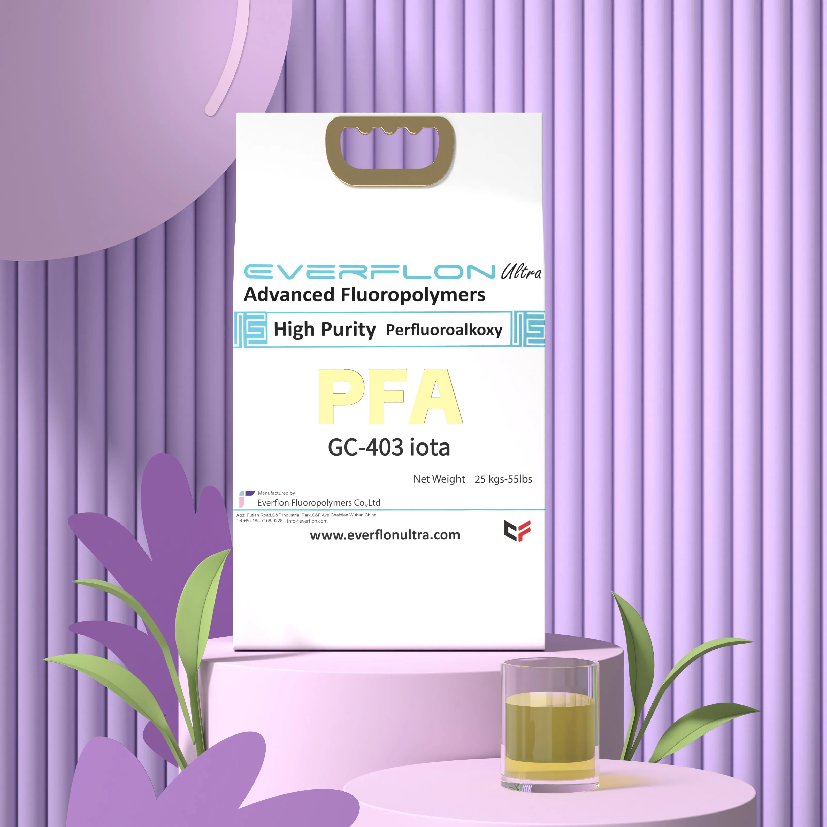 A dispersão de PFA Everflon™ é embalada em tambor de PE de 25L com conteúdo de 20kg (44lb) e em tambor IBC de 1000L com conteúdo de 1250kg.