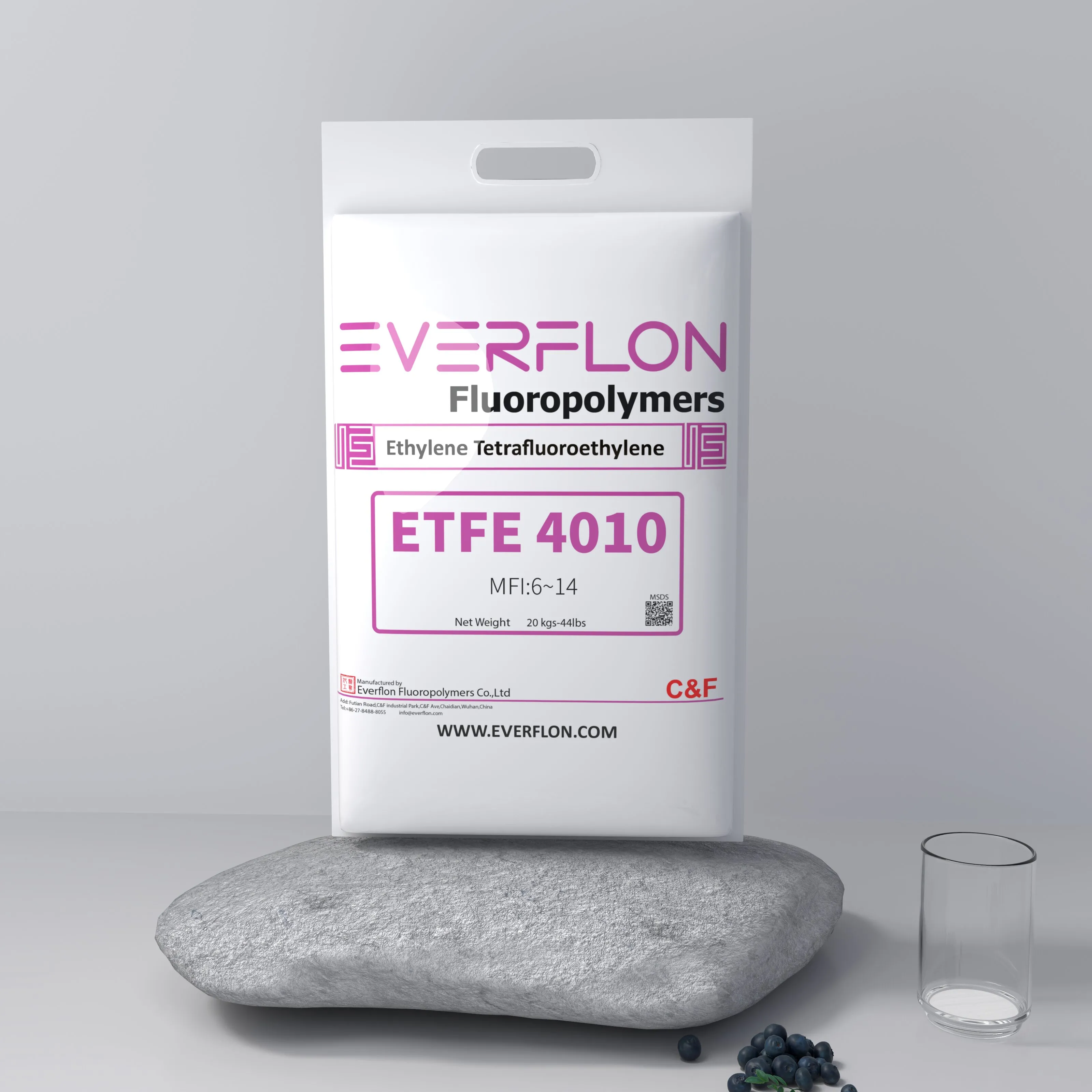 As propriedades das resinas Everflon™ ETFE não são afetadas pelo tempo de armazenamento. As condições de armazenamento em temperatura ambiente devem ser planejadas para evitar contaminação por partículas em suspensão no ar e a formação de condensação de água na resina quando esta for retirada dos recipientes. As resinas fluoroplásticas Everflon™ ETFE são embaladas em sacos plásticos de 20 kg.